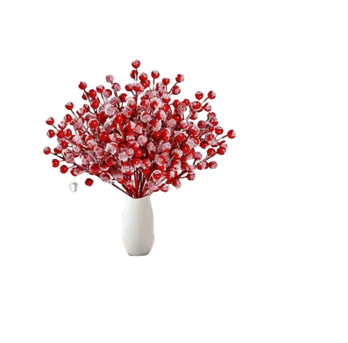 Élégance hivernale – Ces branches de baies rouges et de flocons de neige apportent une touche chaleureuse et festive à votre décoration.